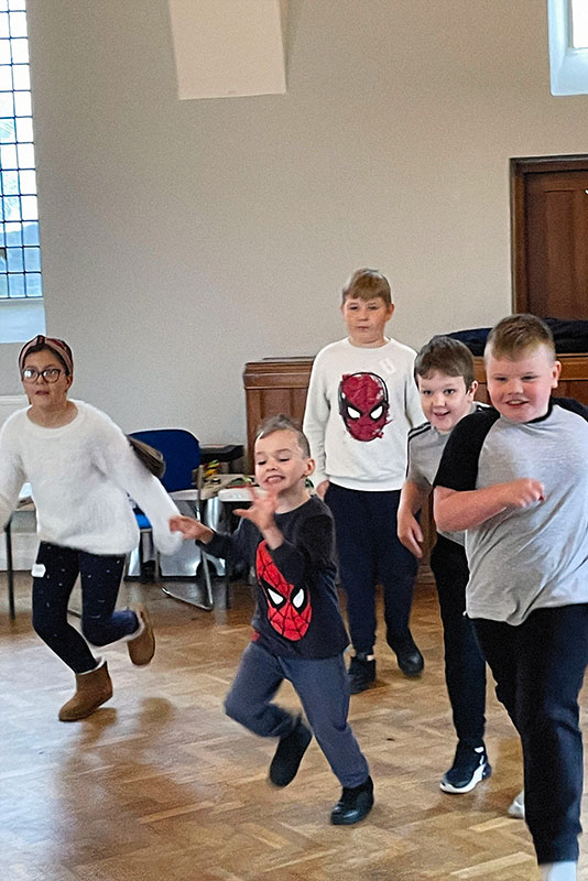 • Introducing choreographic tools such as relationship to music, each other and the space to create performance